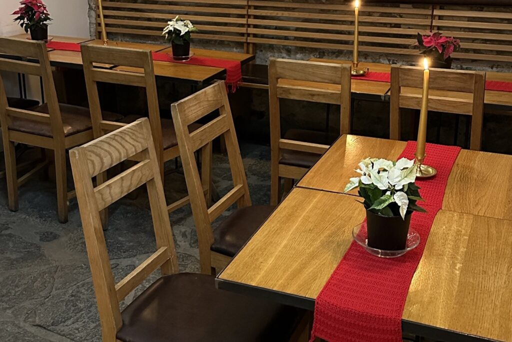 Opptil 60 personer. Kan ha lukket telt med varmelamper, bar og servering